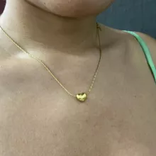 I adore this charming little heart necklace! The size of the heart is exactly what I had in mind, and I personally appreciate the chain passing through the heart. It has proven to be durable for daily wear. My only quibble is that the chain wasn't long enough for my liking, so I had to add an extender to achieve the desired length.