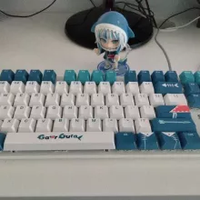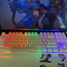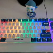 The keys on this keyboard are noticeably loud and tactile. They are also hot-swappable, allowing me to customize them with Gura caps. The keyboard features 10 diverse lighting modes, my favorite being the reactive mode where lights activate on keypress. Despite its surprisingly low cost, it's a genuine mechanical keyboard without any compromises.