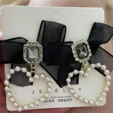 The combination of the S925 needle, black bowknot, and heart-shaped drop with crystal glass and simulated pearls sets these earrings apart. This exquisite mix of materials creates a look that is both classic and on-trend. The high-quality materials ensure that these earrings are not only beautiful but also long-lasting, making them a valuable addition to your jewelry collection.