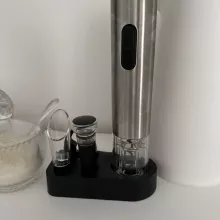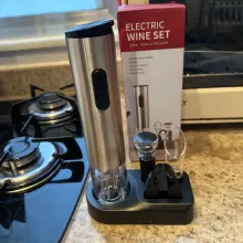 I find this wine opener very helpful because opening wine bottles was hard for me before. It's strong, easy to use, and rechargeable. Plus, it comes with a stand.