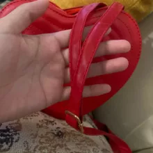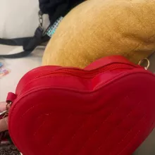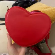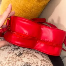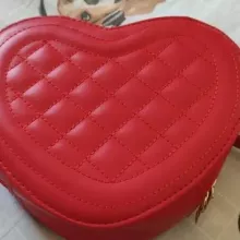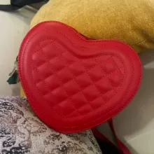 I'm so enamored with this purse that I've bought it twice - once for myself and once for my mother, who also adores it. It's exquisitely made and spacious, with a vibrant red hue. It's an adorable little heart-shaped purse that's well worth the price. I've had fun experimenting with different chains and accessories to make it even more stylish.