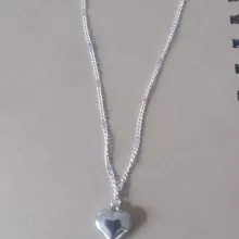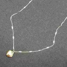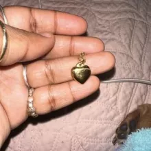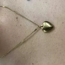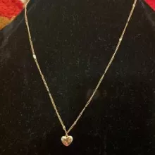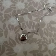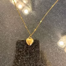 This necklace is so lovely, shiny, and of good quality. The little heart charm is adorable. It comes with plenty of adjusters, so you can get the perfect length. It sits just above the chest, as shown in the picture.