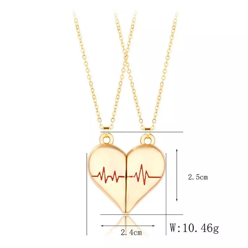 Beautiful necklaces with a unique heartbeat design. I love how they connect with a magnet, very symbolic for a couple. Just wish the chain was a bit longer, but overall, a great purchase!