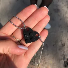 Our necklace set stands out for its unique design, merging the playful essence of bricks with elegant jewelry craftsmanship. It’s not just a piece of jewelry; it’s a memorable keepsake that encapsulates your shared memories and affection. The interlocking heart bricks represent the strong bond between you and your partner, making it a meaningful and special accessory.