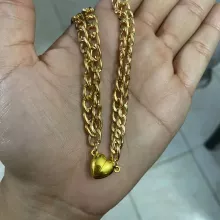 The bracelets are impressively shiny, giving off a luxurious vibe. The heavy material adds a substantial feel, and the magnets on the heart halves function seamlessly. However, a couple of minor drawbacks caught my attention: Firstly, the magnet occasionally sticks to the bracelet itself, which can be a tad inconvenient. Secondly, the chains aren't as thick as depicted in the advertised image. In summary, it's not a bad purchase overall. If you're considering getting it, I'd say go for it, but keep an eye on the chain thickness. The aesthetic appeal and functionality make it worthwhile, just with a couple of considerations in mind.
