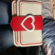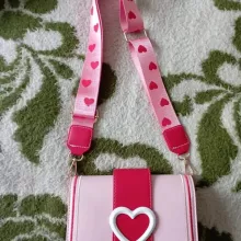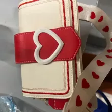 The bag arrived exactly as in the photo, very well made. The only downside is the heart is a bit scratched, but it's not noticeable unless you look closely. For the price, it's really great.