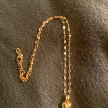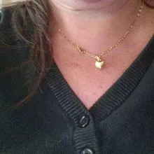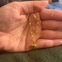 It's cute, small heart, elegant, I 'd buy it again. Gold beautiful