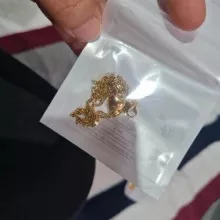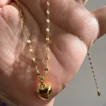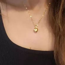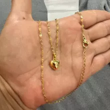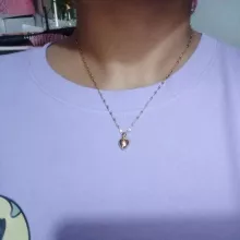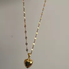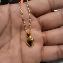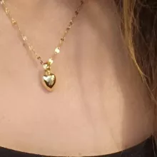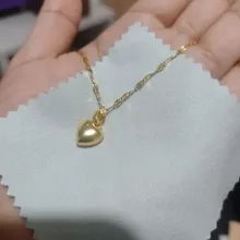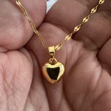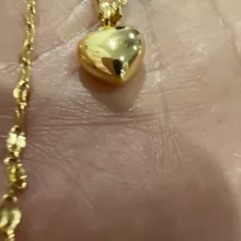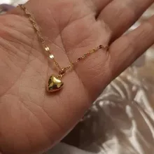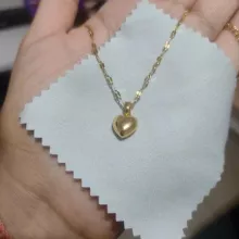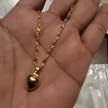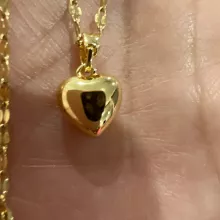 The heart is small, in general very bright and beautiful, I liked it very much, it has a small defective heart and does not look totally smooth on the one hand, but it is almost not noticeable, the chain is not so long, I do not recommend if you have a very wide neck it could be uncomfortable, Bring a cloth to clean.