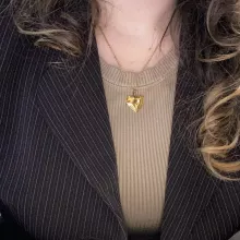 - Design: Classic heart-shaped pendant paired with a trendy lip chain